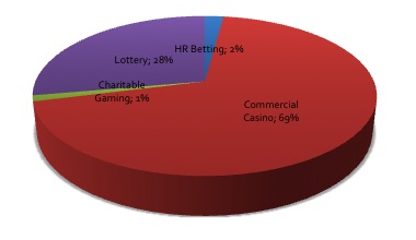 The New Jersey land-based gaming market has been in decline since 2006. The recently launched onshore licensed interactive gaming market (casino and poker) even though to date failing to achieve its potential is contributing to stabilising the state’s gaming market. H2 are forecasting that total gambling revenue will increase from US$4.2bn in 2013 to US$4.4bn by 2018. Commercial casinos account for the vast majority of the state’s gambling activity at just under 70% of all gross win[1], though horserace betting and a state lottery are also in operation.