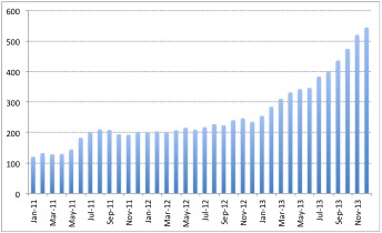 As we enter 2014 H2 are pleased to report that during the past 12 months a record 544 new or updated postings were made in our password protected area for our subscribers. This represents an average of just over 45 per month and was 130% up on the level achieved in 2012.